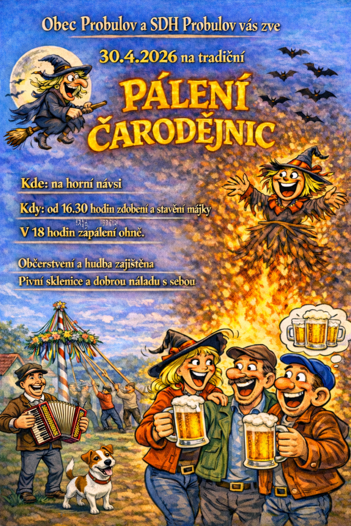 Obec Probulov a SDH Probulov vás srdečně zvou na tradiční pálení čarodějnic na horní návsi.