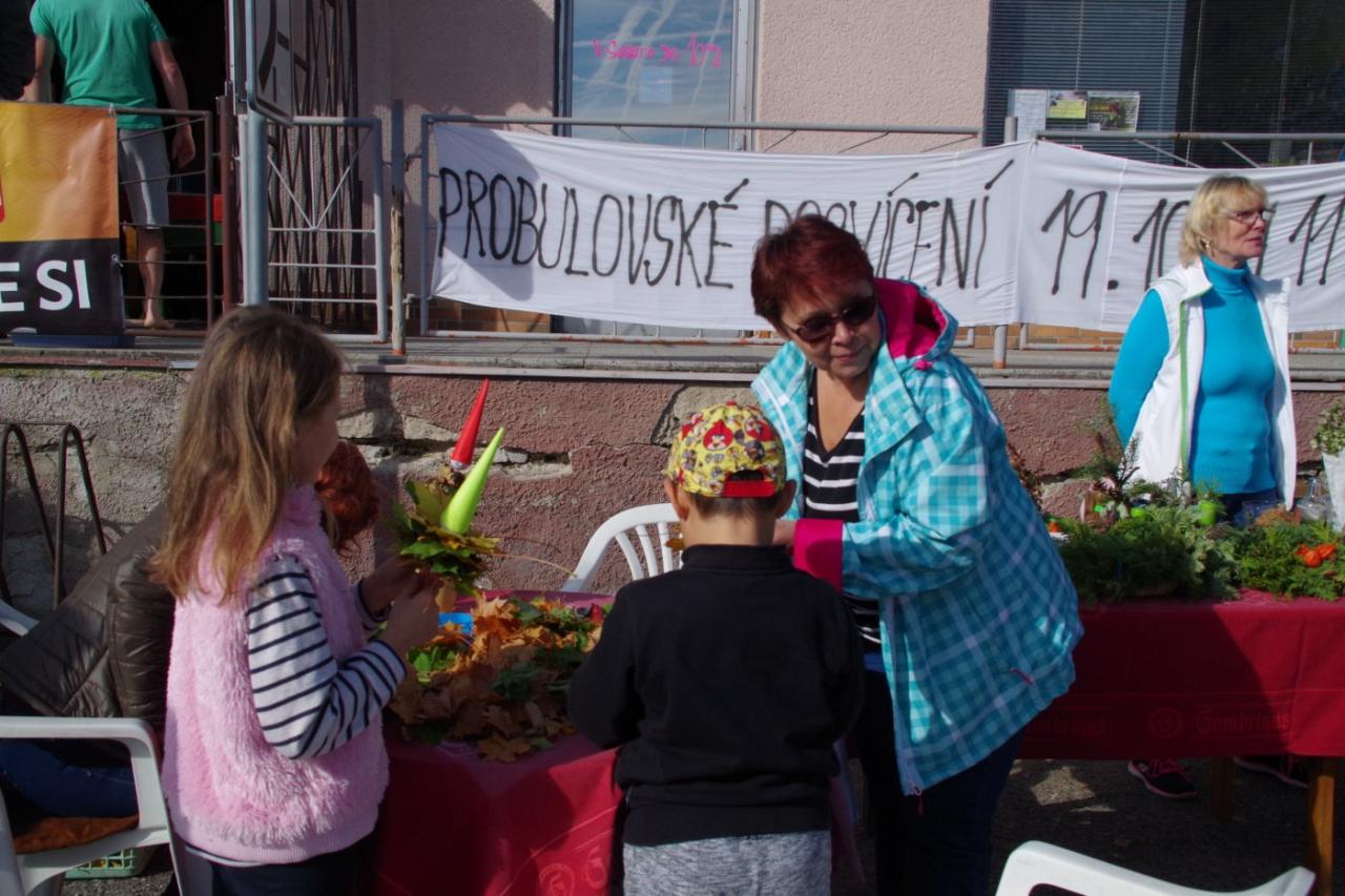 V sobotu 19. 10. se v Probulově na návsi konalo Probulovské posvícení. Počasí jsme měli objednané nádherné, všichni dobře pojedli, popili a pobavili se. Nejen děti se opět mohly účastnit spousty dílniček a tvoření pro ně určených, vybarvovaly textilní polštářky nebo tašky, navlékaly skřítky z podzimního listí, povozily se na koních, malovaly si keramické náhrdelníky, malovaly se na obličej, vyřezávaly ze dřeva a nebo vrtaly do trámu. Dále probulovské ženy napekly koláče a další dobroty, též proběhla soutěž o ceny za nejlepší domácí produkty. Na prvním místě se umístila Květa Mourková, na druhém místě Gábina Klausová z chat a třetí nejlepší koláče měla Eva Šitová. O výborné jídlo se postarala Jarka Šimonová a také Pavel Bálek který přímo na místě udil v udírně kapry. Ani o prodejce nebyla nouze, nakoupit se dala podzimní výzdoba a dekorace, originální oblečení, keramika, šperky, dýně, svíčky, mýdla, bylinky a spoustu dalšího. O hudbu se postaral harmonikář pan Jan Šimek a zahrál nám známé české písničky. Posezení s muzikou a občerstvením se myslím všem velmi líbilo.